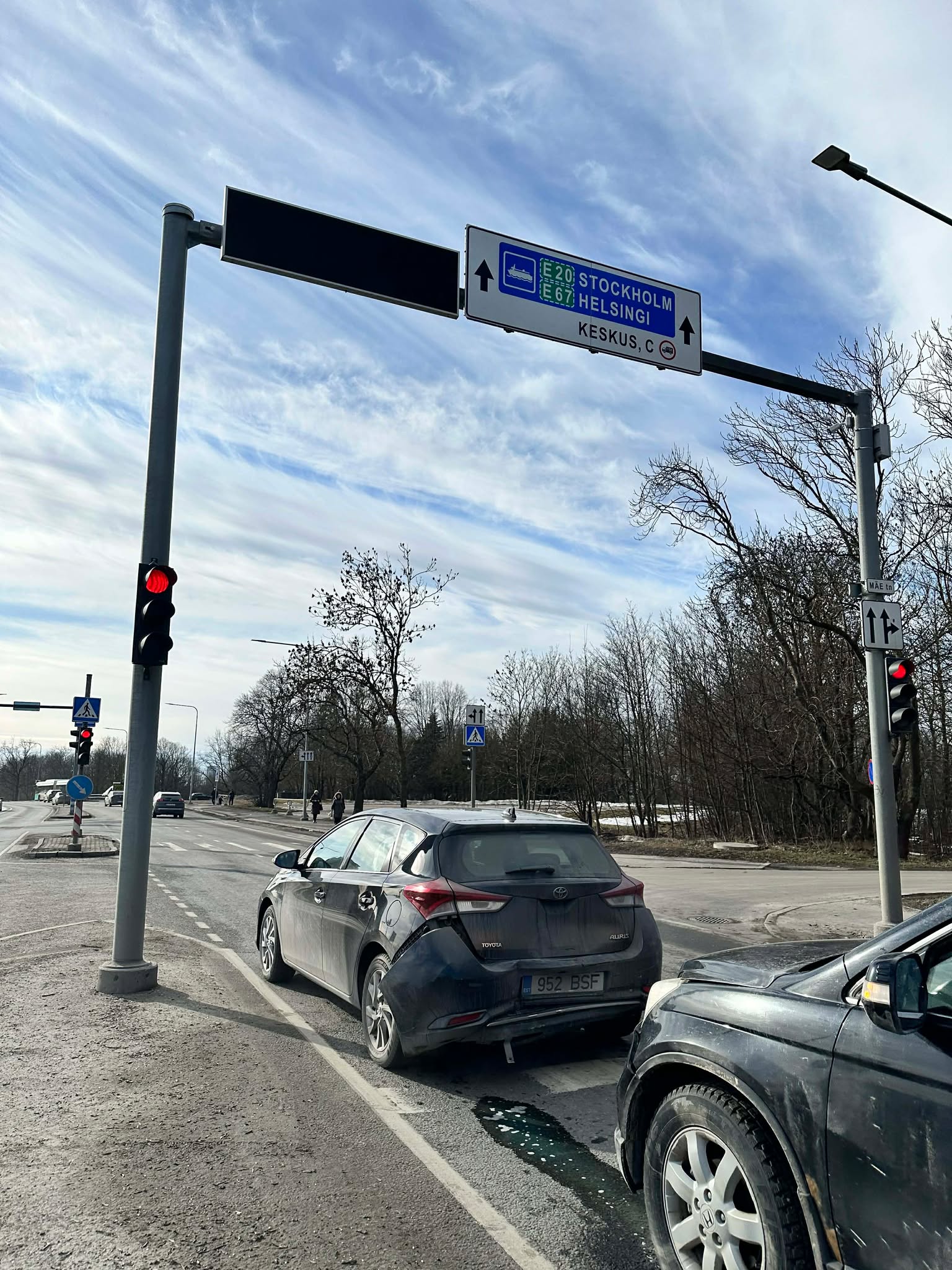 Kutt oli väga viisakas, vabandas ja puha. Võttis õnneks juhtohjad enda kätte (nagu oleks tal varemgi midagi sellist juhtunud). Tegime keset sõiduteed pildid ära ja sõitsime kõrvalasuvasse bensukasse. Ma ei teadnud, et on olemas selline mugav koht nagu avarii.lkf.ee, kus õnnetus vormistada. Kuna noormees kohe end süüdi tunnistas, polnud politseid vaja. Viimaks polnud vaja ka autoabi, sest mu Aurise suunatuled ja pidurituli töötasid, miskit rohkem nagu kohe küljest kukkumas polnud ja sain vaikselt Raplasse tiksuda. Mul oli vaja jõuda kooli sünnipäevale.
