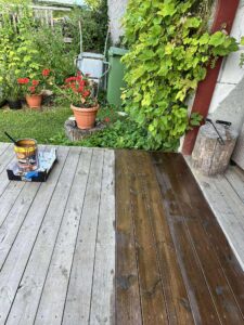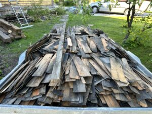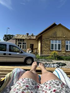 Kui plekid said tuppa viidud, jäi murule jube läbu. Nüüd on autokäru täis plekitükke ja puidujäänuseid ja lisaks on seal vana ploomipuu, mille mahavõtmist olime aina edasi lükanud. Selle nurjatu ploomi pihta tagurdas mees ükskord täie pauguga mu autoga, aga nüüd on tal endal veel suurem masin ja parkla kipub ka nagunii juba väikeseks jääma.
