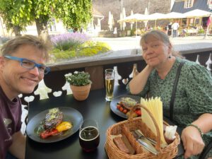 Kui aiatööd tehtud said, käisin ikkagi kõnniringil ka ära ja tagasiteel tulin poest läbi, et lihapirukale hakkliha osta. Kraamisin tube ja küpsetasin ühe soolase ja ühe magusa piruka või õieti kringlilaadse pärja. Ma nädalavahetustel ei viitsi eriti süüa teha, sellepärast mätserdan pärmitaignaga.