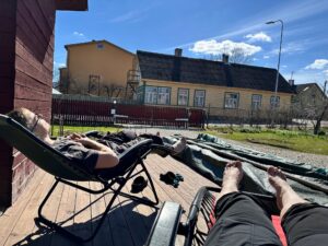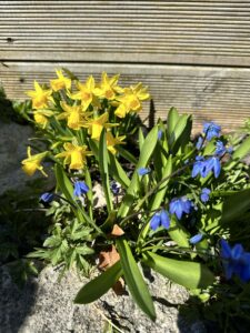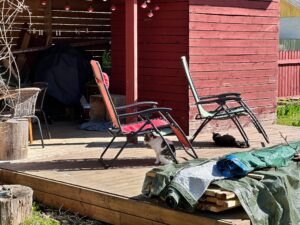 Suuremad mullatööd jäid tegemata, sest Bauhofist ostetud turbad olid läbinisti jääs. Ja oligi hea, et kõike teha ei saanud, mida plaanisin, sest tahtsin ka puhata ja mängida. Kuuri terrassi siiski koristasime, et oleks toredam peesitada.