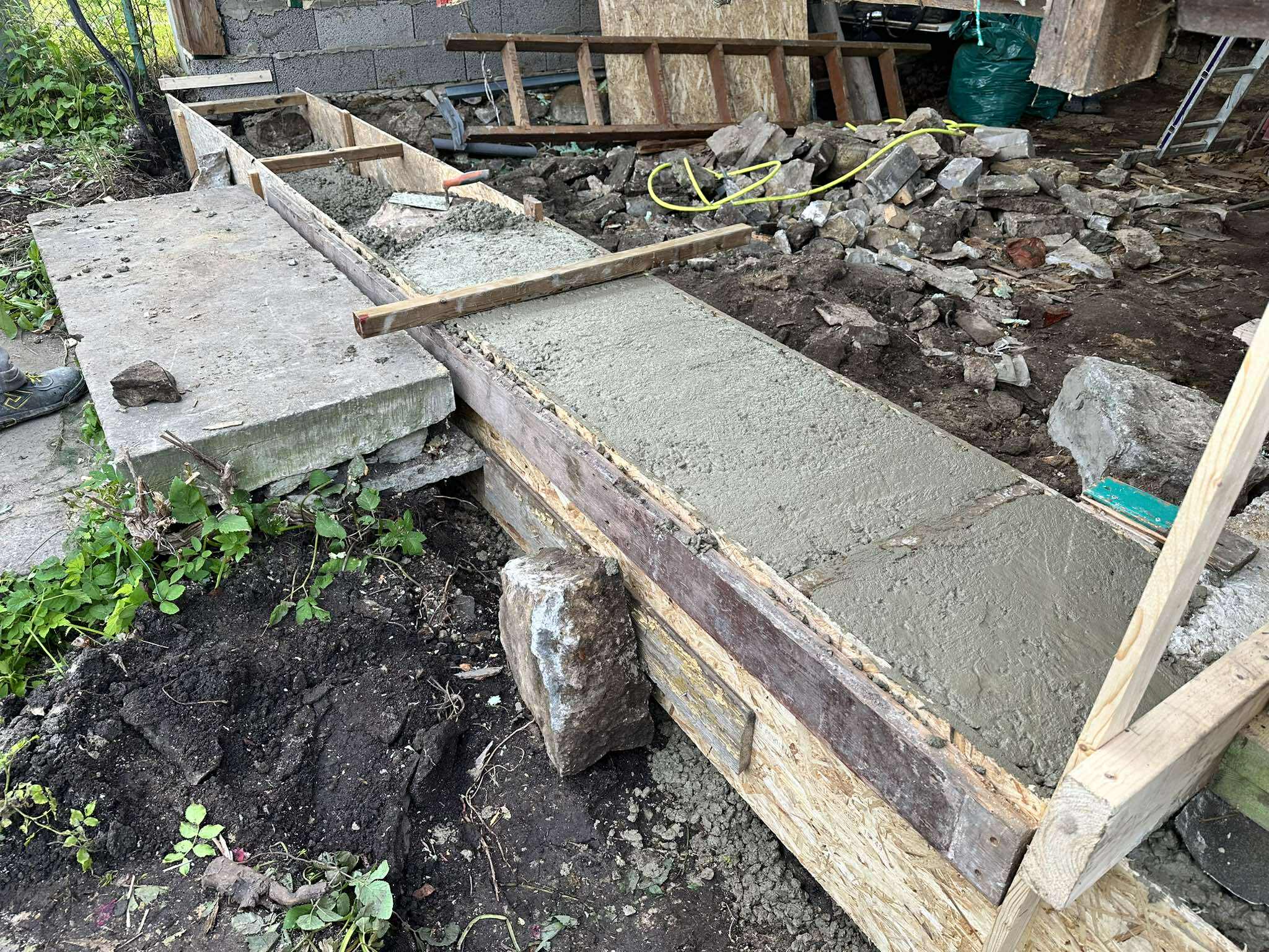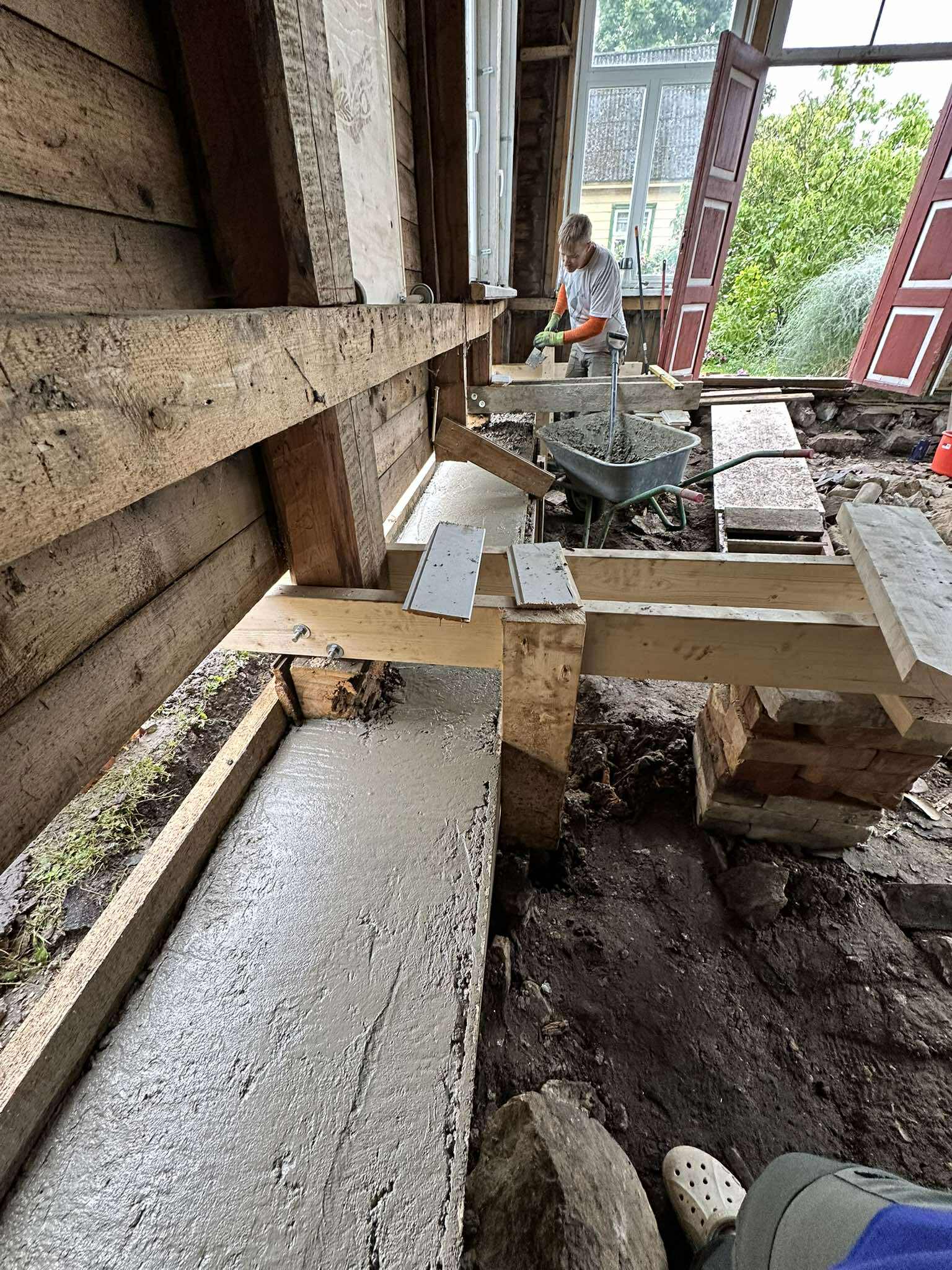 Täna tuleb isale appi väike poeg oma daamiga. Veranda on selles järgus, et järgmine töö on põranda valamine, täna nad teevad selleks ettevalmistusi – vaja betooni alla vedida kõik õuel vedelevad kivid ja kuuris kivistunud segukotid. Mrt läks just üle tee metallitöökotta, sest avastas, et kärul on miski keevis lahti. Me polegi nendega varem suhelnud, kuigi metallitöökoda otse oma akna all on ju igati kasulik naaber.